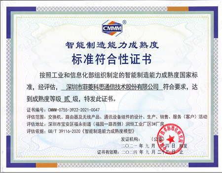 • Intelligent manufacturing capability Maturity Level 2 certificate